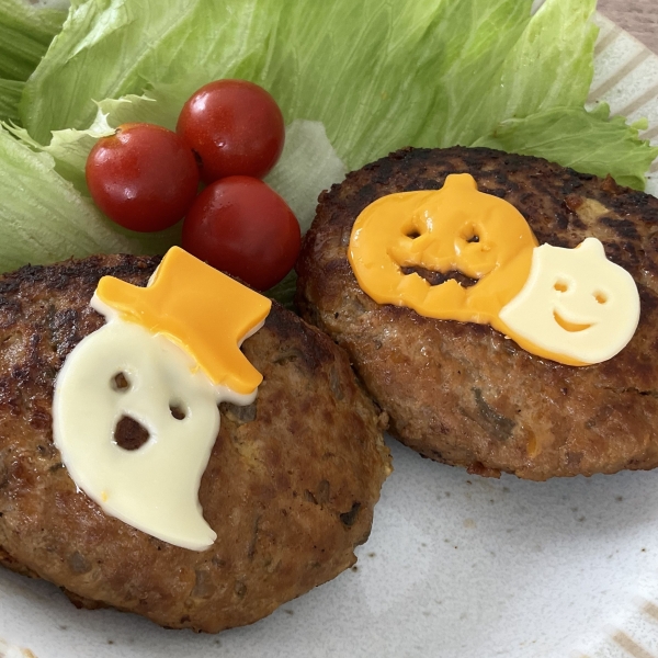 めかぶを使用したハンバーグのレシピです。ハロウィン向けにかわいいおばけがトッピングされています。材料を混ぜて焼くだけの簡単なレシピになっているので、お子様と一緒に作ってみるのもおすすめです。ハンバーグの種にソースとケチャップを混ぜ込んでいるため、めかぶそのものの風味が苦手な方でも美味しくお召し上がりいただけます。